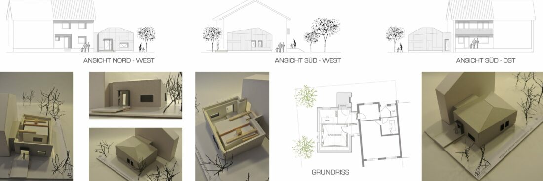 An eine bestehende Doppelhaushälfte und um eine vorhandene Aufnahmekabine herum galt es, ein Bauwerk zu errichten, welches den Vorgaben des ortsüblichen qualifizierten Bebauungsplans sowie dem allgemeingültigen Baurecht entspricht, aber auch hohe gestalterische und schallschutztechnische Ansprüche erfüllt.
